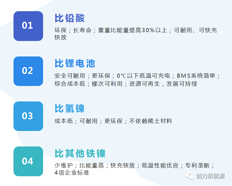 新型鐵鎳蓄電池的對(duì)比優(yōu)勢(shì):